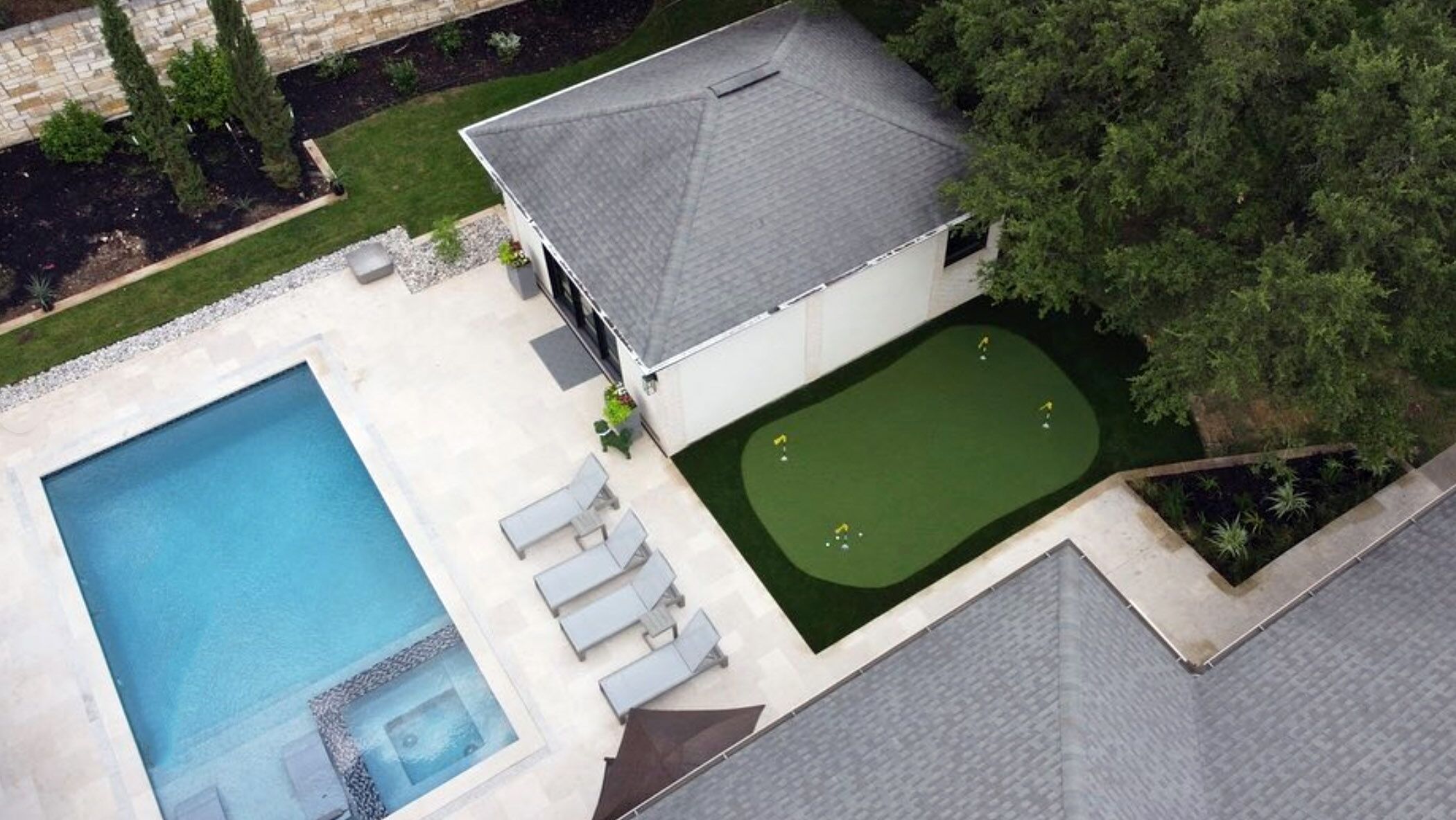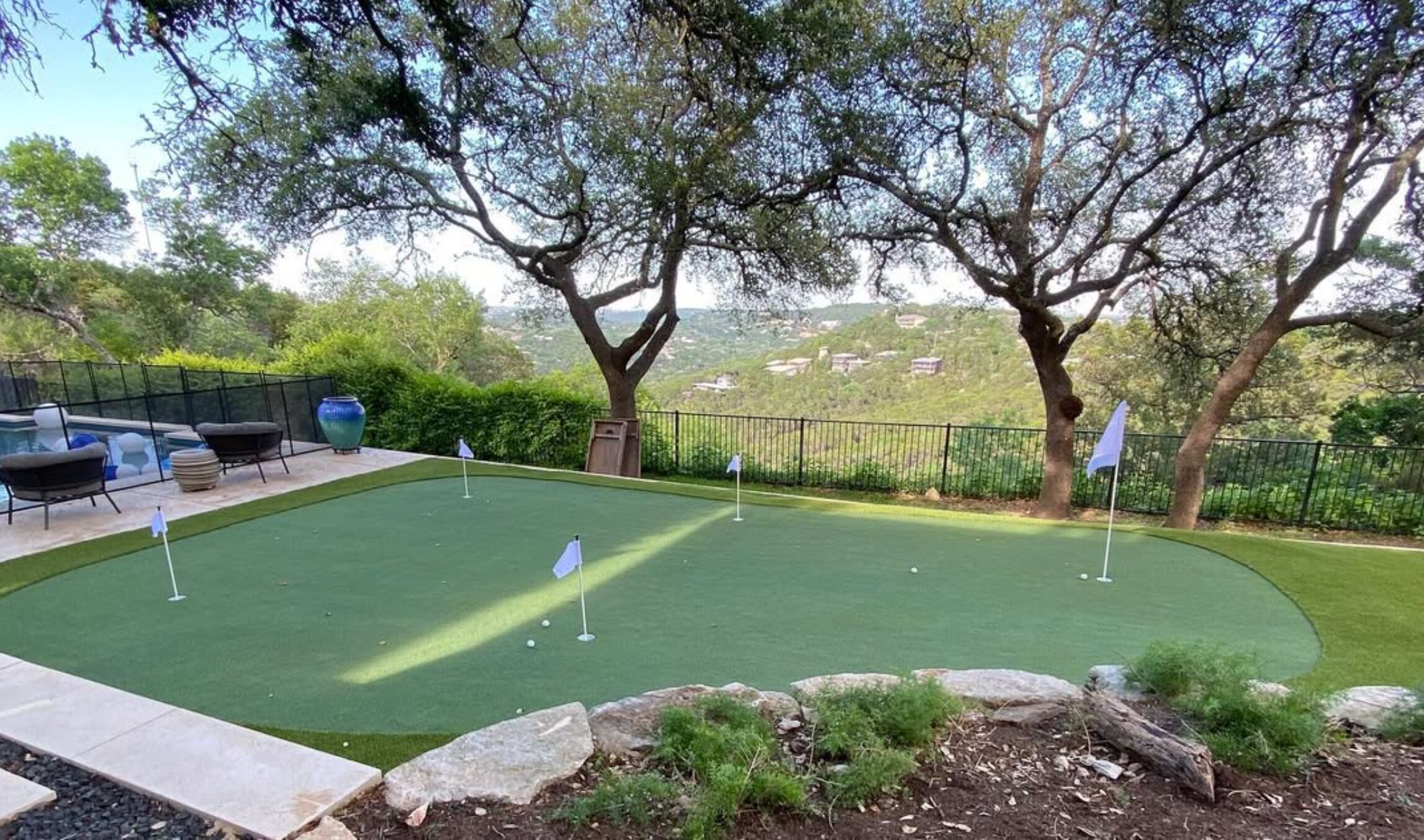 With our experienced and certified team, we provide expert synthetic turf installation. Inquire about our Certified Playground Surface, which prioritizes the safety of your children. As avid golfers, we guarantee that no one designs and builds backyard putting greens better than Grass!365.