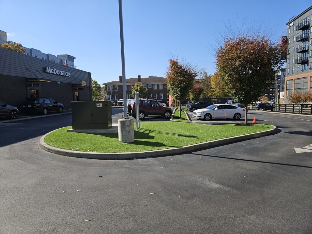 When most Americans step onto your business property, their first impression comes from your parking lot—so why let messy landscape beds drag it down? Grass!365, with over 20 years of expertise in Lexington and Louisville, offers a smart fix: artificial turf with our durable, fast-draining SealTuft technology. While the areas around your parking lot, up against your building, and other spots are perfect for plants and shrubs, the parking islands and high-traffic zones don’t play nice with natural grass or mulch. Foot traffic displaces mulch, grass dies off, irrigation becomes a hassle, and maintenance feels like a never-ending chore. With Grass!365’s artificial turf on those parking lot islands, our certified installers deliver a low-maintenance solution—requiring just a quick blow-off in the morning or evening to keep your business looking sharp year-round. SealTuft’s UV-resistant fibers and 100% recyclable design ensure lasting beauty and eco-friendly appeal, making your property stand out for all the right reasons.