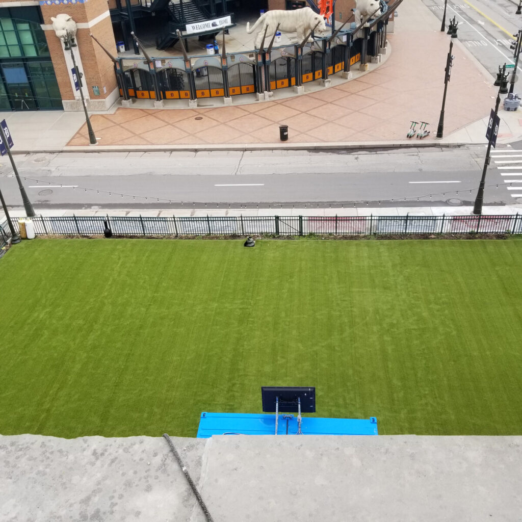 Over the years, Grass!365 has had the honor of working with countless amazing business owners across Kentucky, transforming their properties with our artificial turf in some truly unique spots for all kinds of reasons. While Kentucky’s climate is decent for growing grass—assuming there’s enough sun and not too much foot traffic—our SealTuft turf takes it to another level. It emulates natural grass while offering a tough, year-round surface that barely needs upkeep, revolutionizing spaces like never before. Take this rooftop social area: it’s a stunning example of how a building top can shine with minimal effort, staying gorgeous for years thanks to Grass!365’s certified installers in Lexington and Louisville. We’re excited to partner with you and your business, bringing our expertise wherever you need turf, whatever your vision.